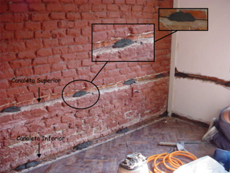 El fenómeno de electrosmosis consiste en el movimiento de un líquido a través de un capilar o a través de los innumerables capilares de un material poroso (ejemplo un ladrillo), cuando es aplicada una diferencia de potencial a los extremos.